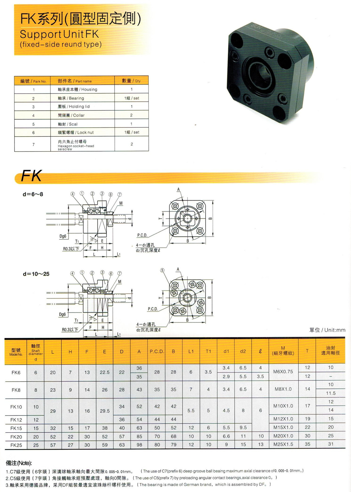 BUN圆型固定座滚珠丝杆丝杠支撑座FK支座系列锁紧