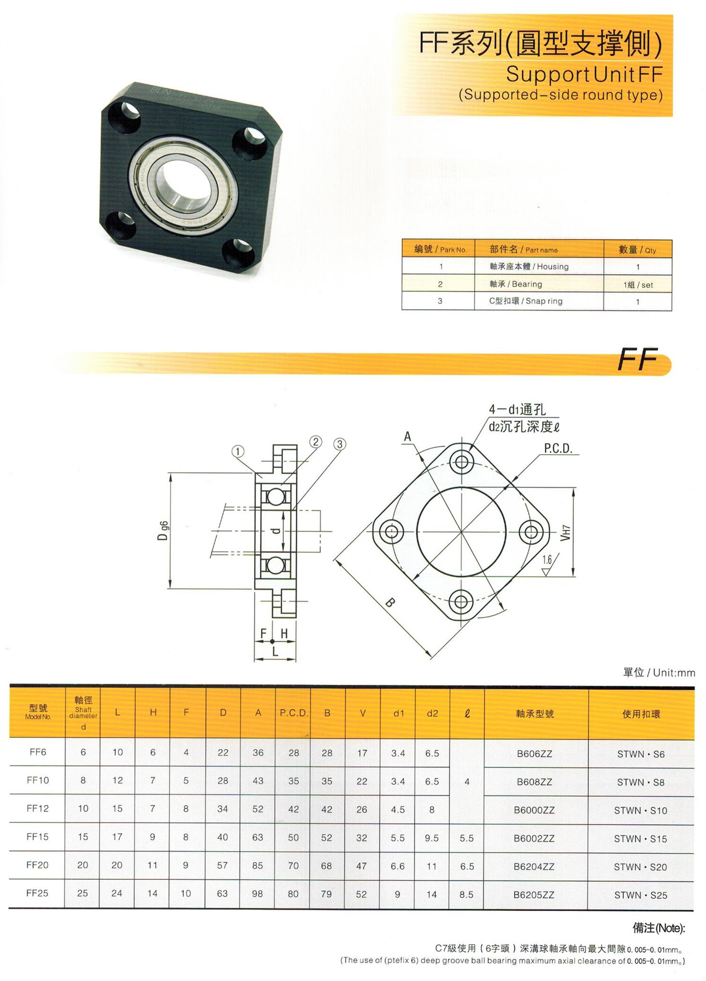 源头工厂FF系列支撑座BUN丝杆支撑座 C7圆型支座锁